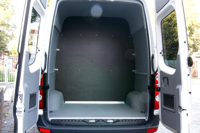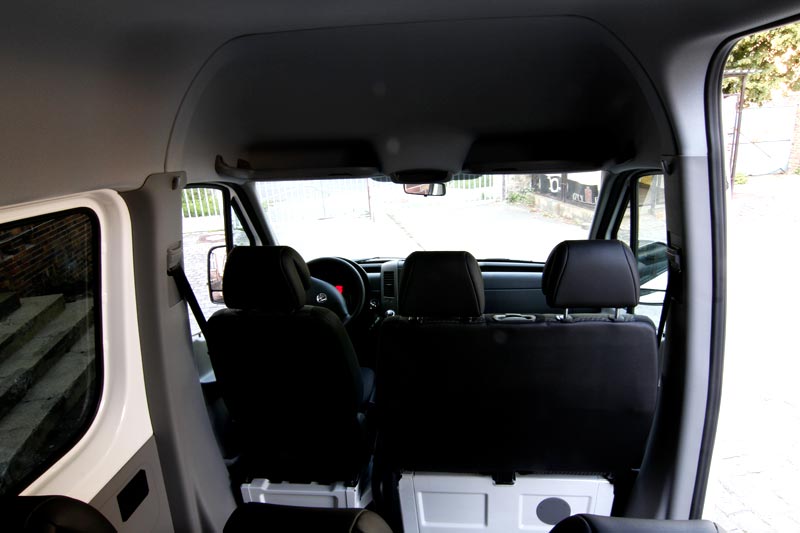 | Laderaummaße: | getrennt von Fahrgastraum Maße: H 1,90m, B 1,75m, T 1,40m (4,6m³) bis zur Decke stapelbar Verzurrösen und Spanngurte vorhanden |
