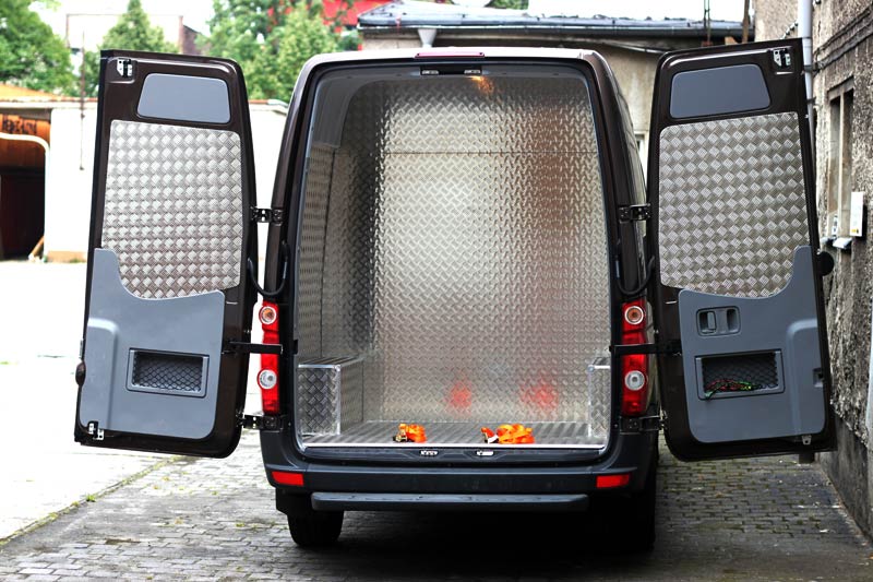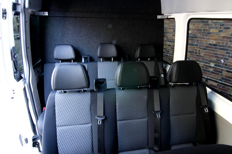 | Laderaummaße: | getrennt von Fahrgastraum Maße: H 1,90m, B 1,75m, T 1,40m (4,6m³) bis zur Decke stapelbar Verzurrösen und Spanngurte vorhanden |